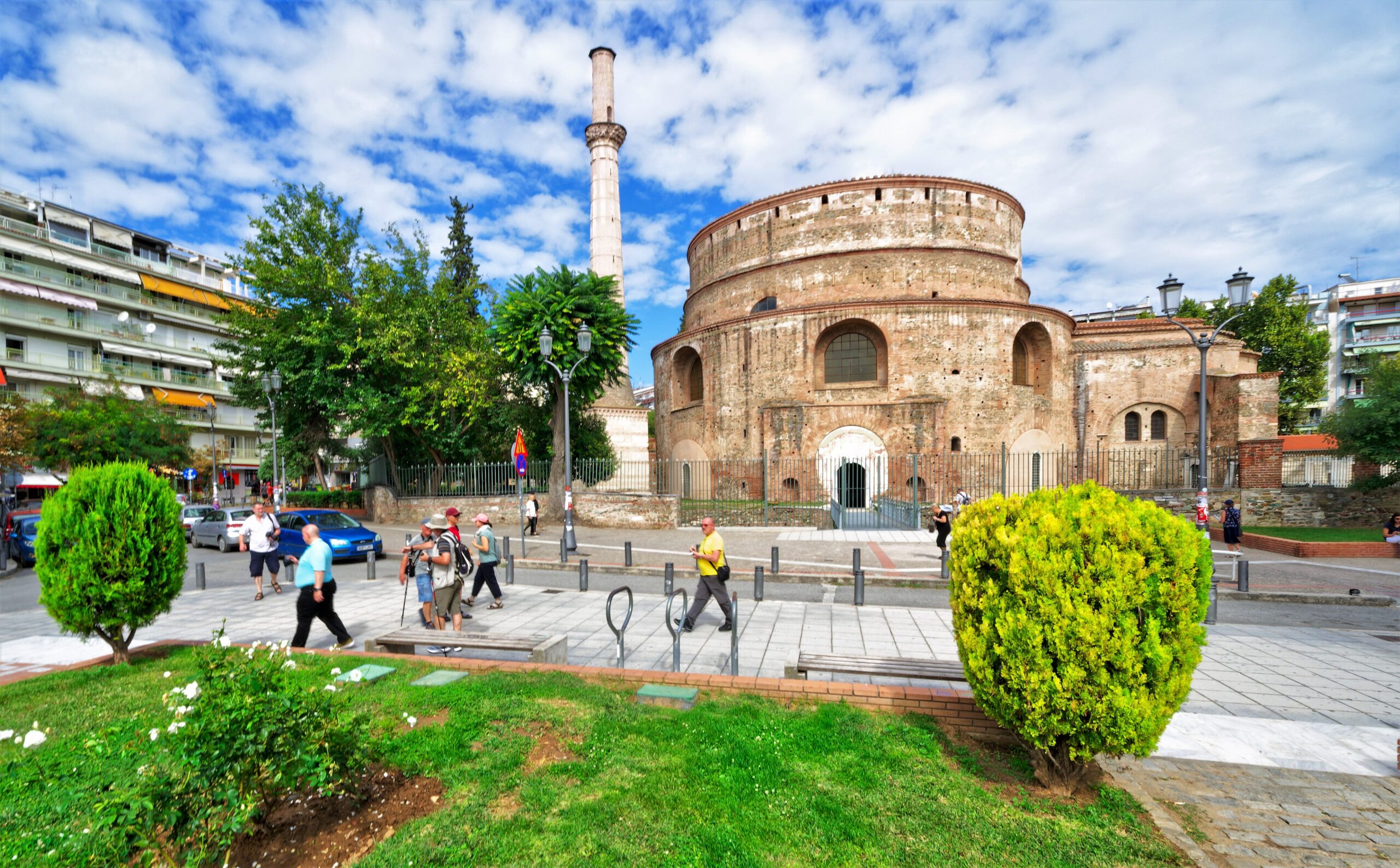 Su localización en Tesalónica no es casual. La ciudad era uno de los grandes centros del Mediterráneo oriental y un punto clave en las rutas entre Oriente y Occidente. En ella, Galerio promovió un conjunto arquitectónico integrado también por el arco triunfal y el palacio imperial, creando una topografía del poder destinada a manifestar la presencia del emperador. La rotonda se relaciona, por tanto, con una política de representación imperial y con la monumentalización urbana propia del final del mundo romano clásico.