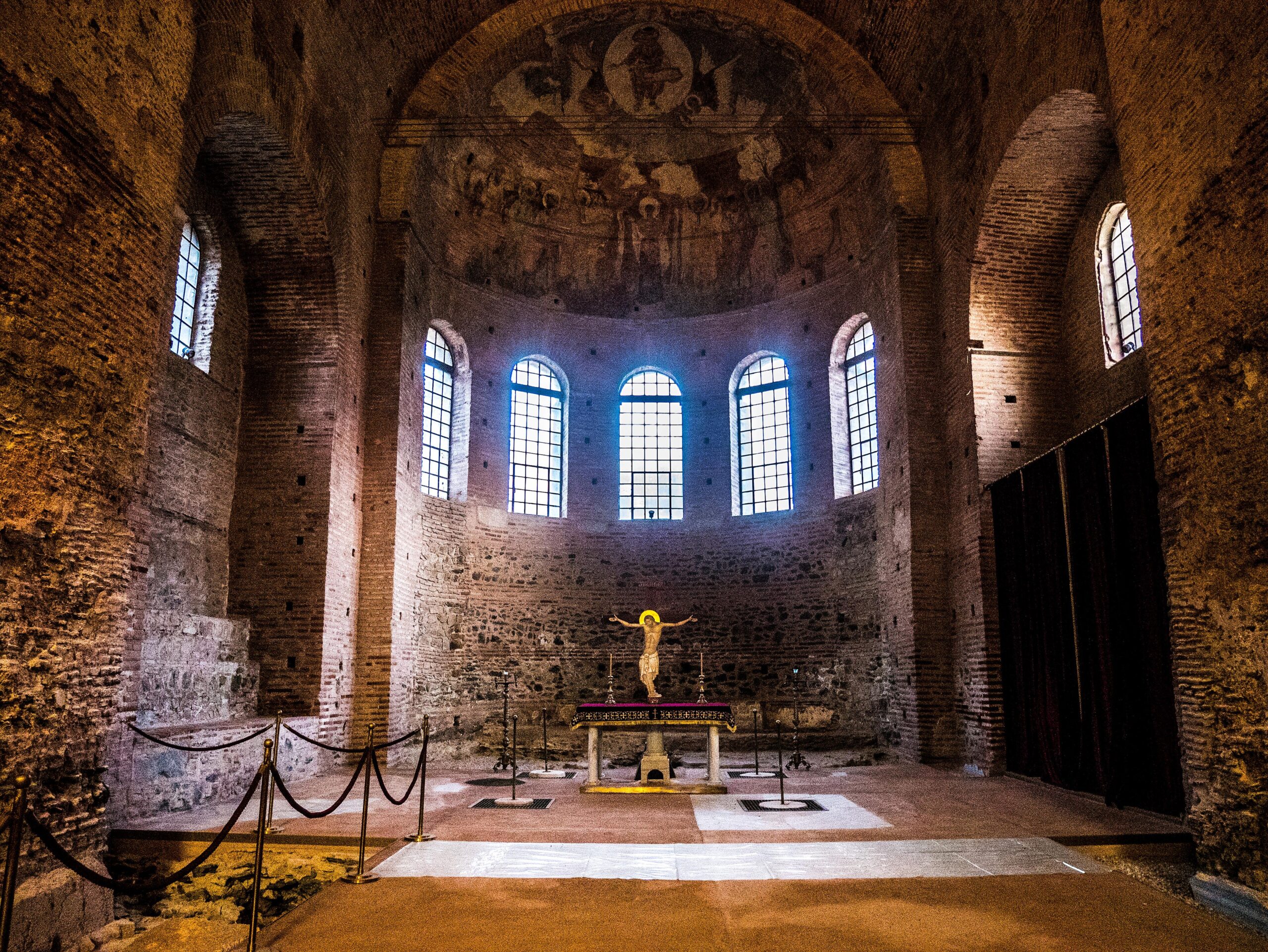 Esa incertidumbre funcional es reveladora, porque demuestra que la arquitectura de la época no siempre responde a categorías simples. En cualquier caso, su posterior transformación en iglesia cristiana durante la Antigüedad tardía fue decisiva para su conservación y para su reinterpretación simbólica. Al ser adaptada al culto cristiano, la rotonda pasó a insertarse en el desarrollo del arte paleocristiano y posteriormente del arte bizantino, convirtiéndose en un ejemplo excepcional de reutilización monumental. Esta adaptación no fue arbitraria: la planta centralizada y el gran espacio cubierto por cúpula se prestaban particularmente bien a usos litúrgicos de fuerte carga simbólica, anticipando algunas de las soluciones que alcanzarán gran desarrollo en la arquitectura bizantina.