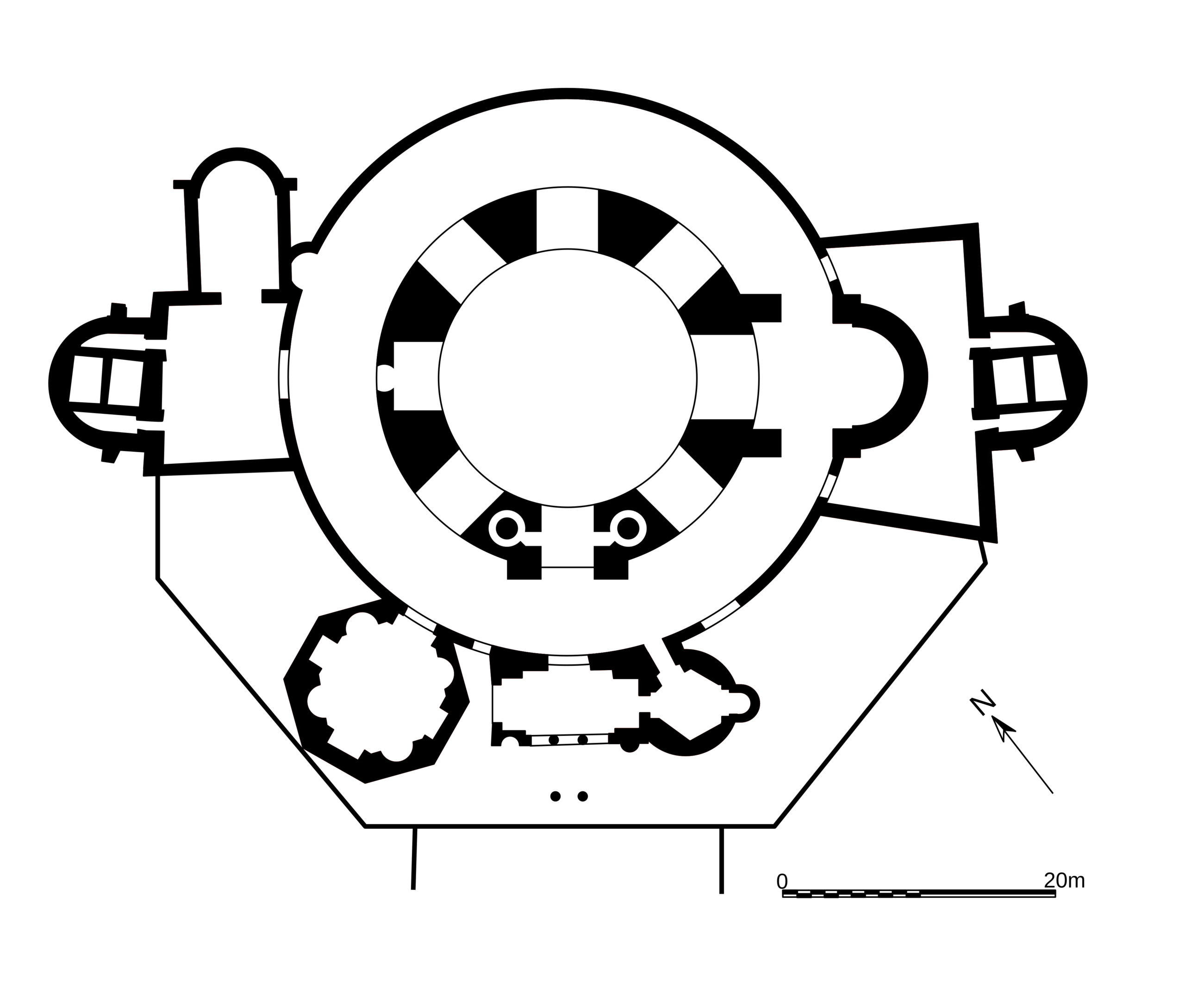 • Posible mausoleo imperial, por analogía con otros edificios centralizados vinculados a enterramientos monumentales.
